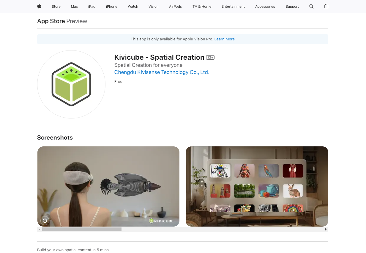 CHENGDU, SICHUAN, CHINA, September 4, 2024 /EINPresswire.com/ — Kivisense, a leader in digital solutions for e-commerce and marketing with a specialty in AI and AR, has just announced the exciting launch of its popular XR creation platform, Kivicube, on the Apple Vision Pro App Store. This significant milestone marks a major step forward in no-code/low-code AR development, making spatial content creation on Apple Vision Pro accessible to a wider range of creators.