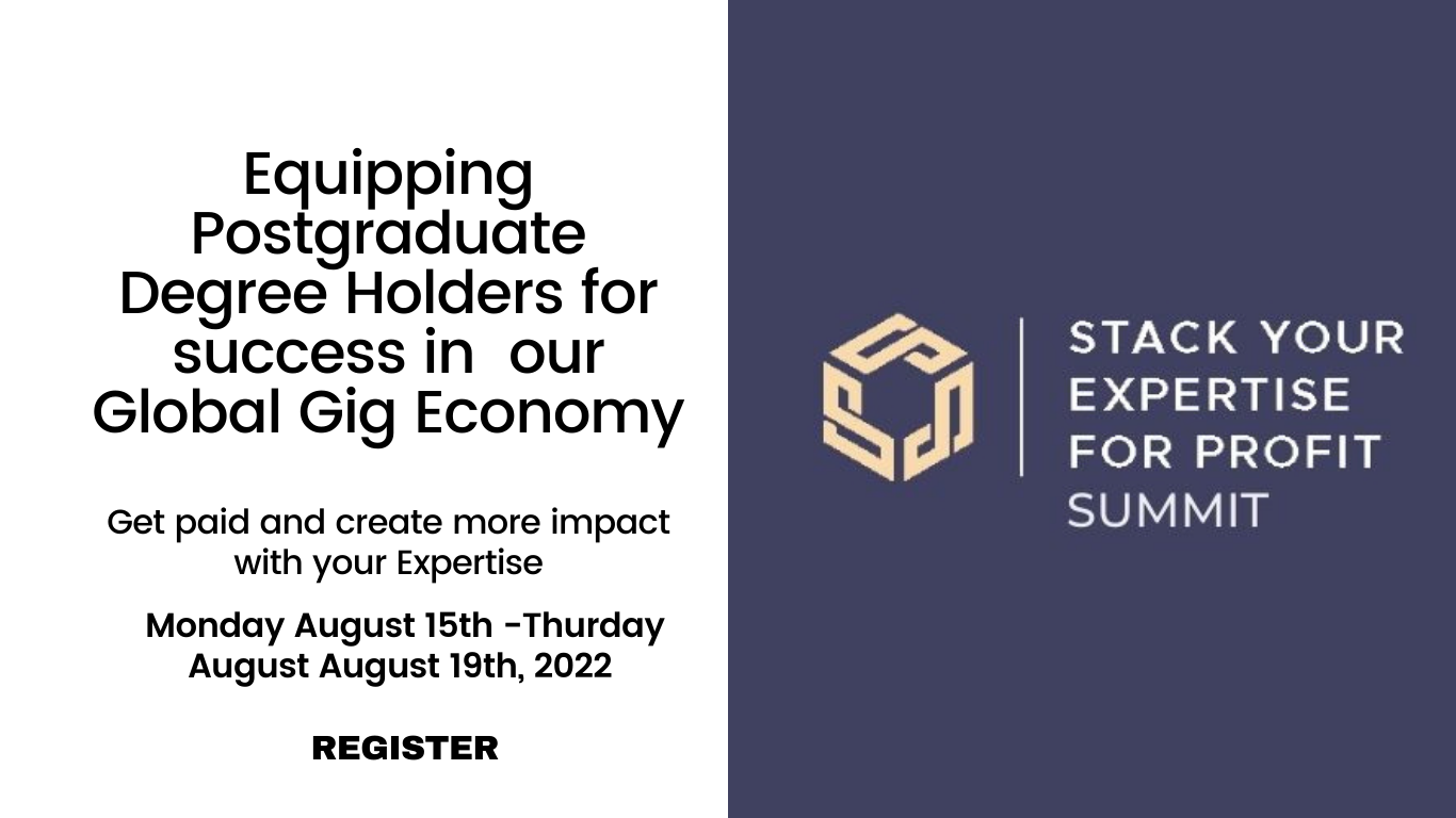 Stack Your Expertise for Profit Summit for Postgraduate Degree Holders