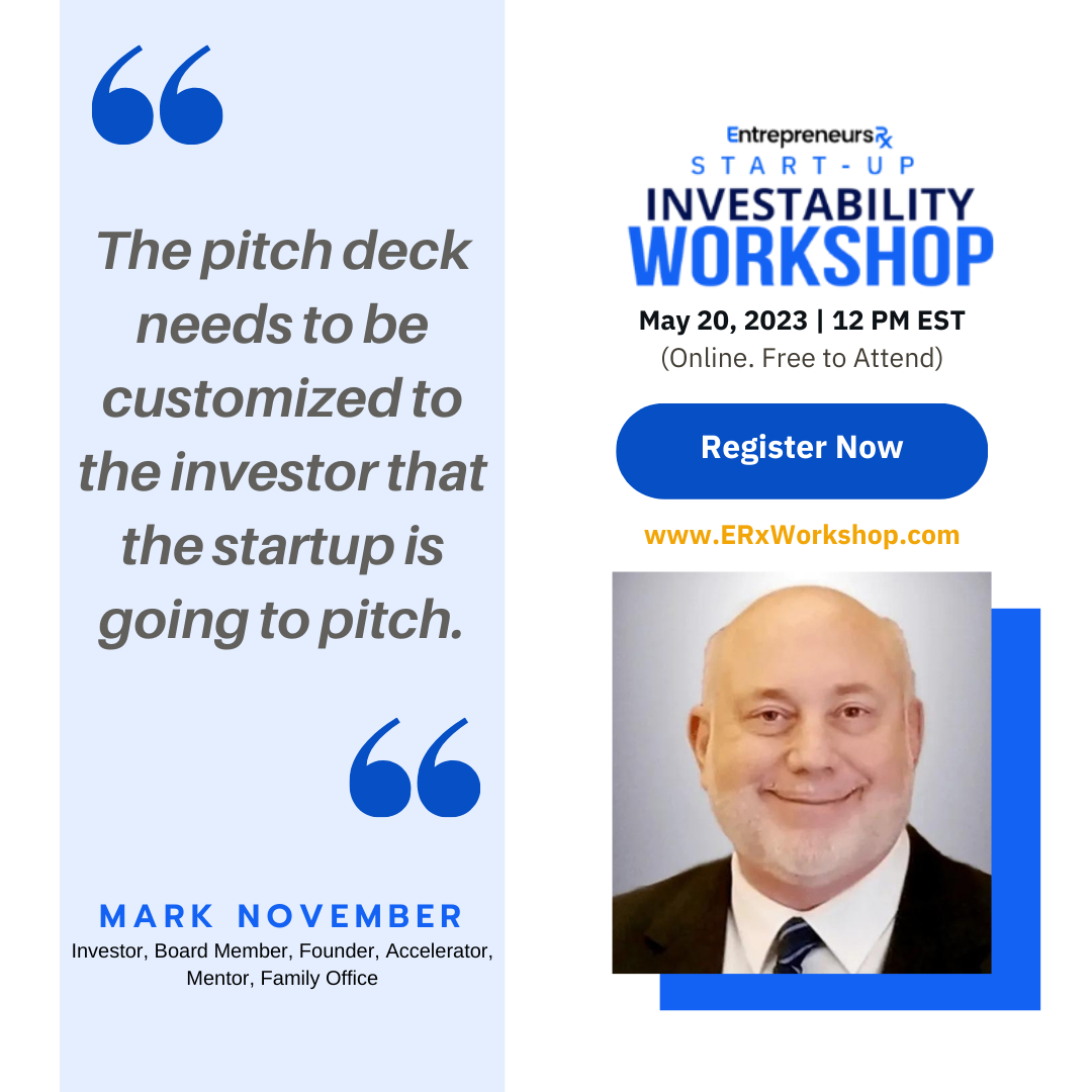 ALBUQUERQUE, NEW MEXICO, UNITED STATES, May 12, 2023/EINPresswire.com/ — EntrepreneursRx, a unique startup advocacy group’s Investability Workshop, will take place on May 20, 2023, and is open for registration.