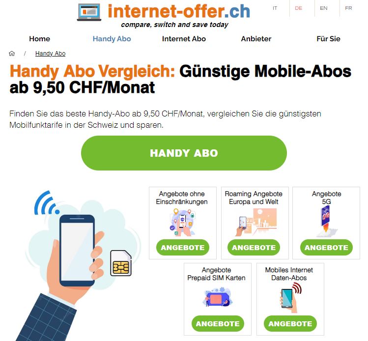 Internet-offer.ch ist ein führendes Vergleichsportal, das Verbrauchern ermöglicht, die besten und kostengünstigsten Handy- und Internetabos in der Schweiz zu finden. Mit nur wenigen Klicks können Nutzer die Angebote verschiedener Anbieter vergleichen, einschließlich weniger bekannter, um die ideale Lösung für ihre Bedürfnisse zu finden.