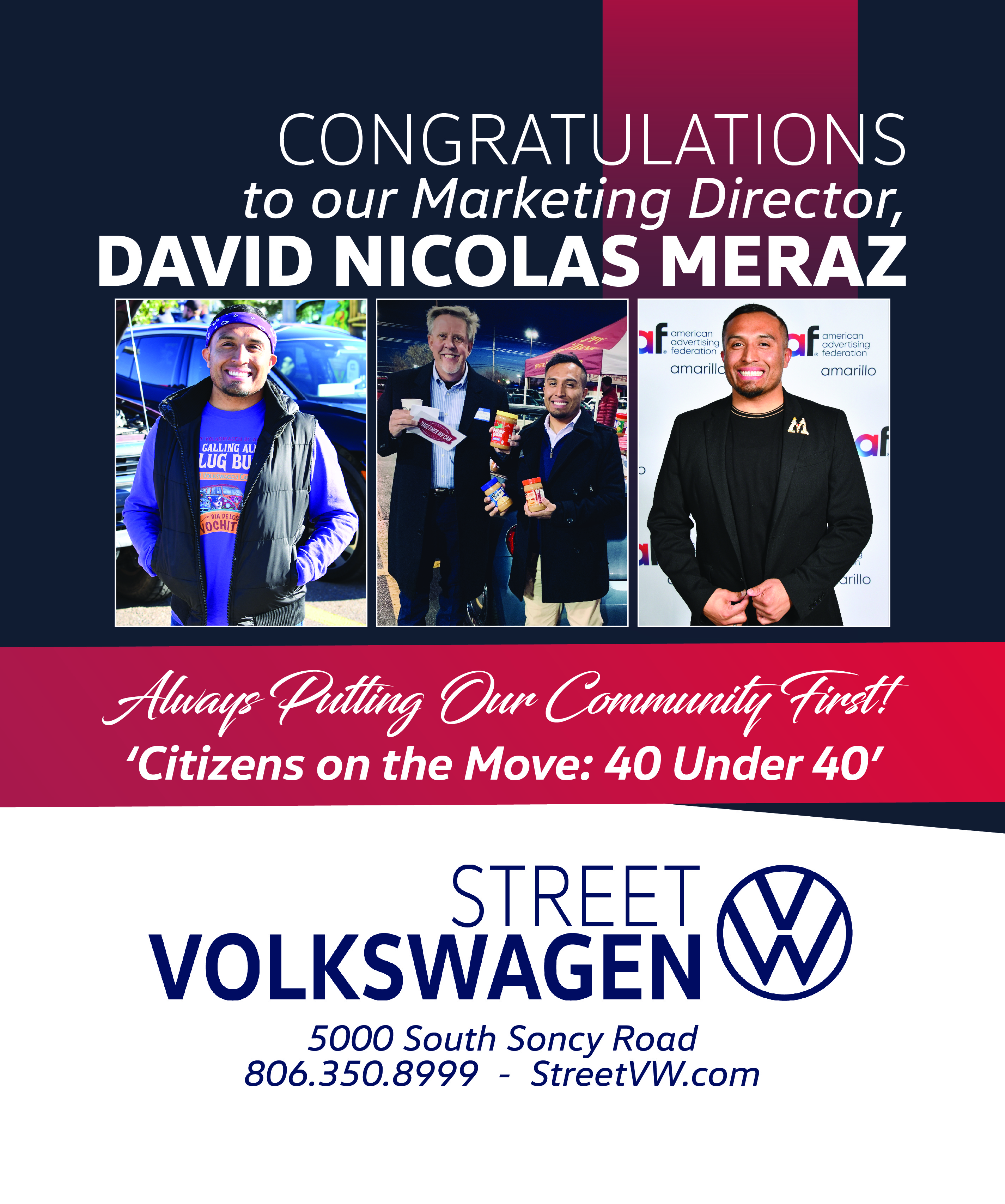 Street Volkswagen of Amarillo’s Marketing Director, David Meraz is one of 40 recipients for the Amarillo Globe News’ Citizens on the Move: 40 Under 40
