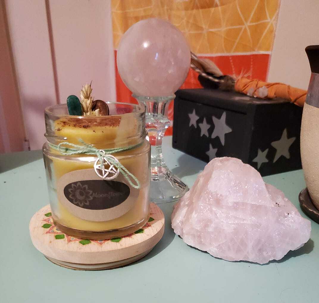Used Wendell Estate Honey jar “upcycled” as beeswax candle by Moonflower