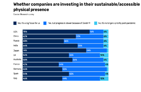 UK priorities seem to be in line with the new world of hybrid/remote working, however. One in 10 business leaders in both the UK and Italy said a sustainable and accessible physical presence was not a post-pandemic priority, the highest total.