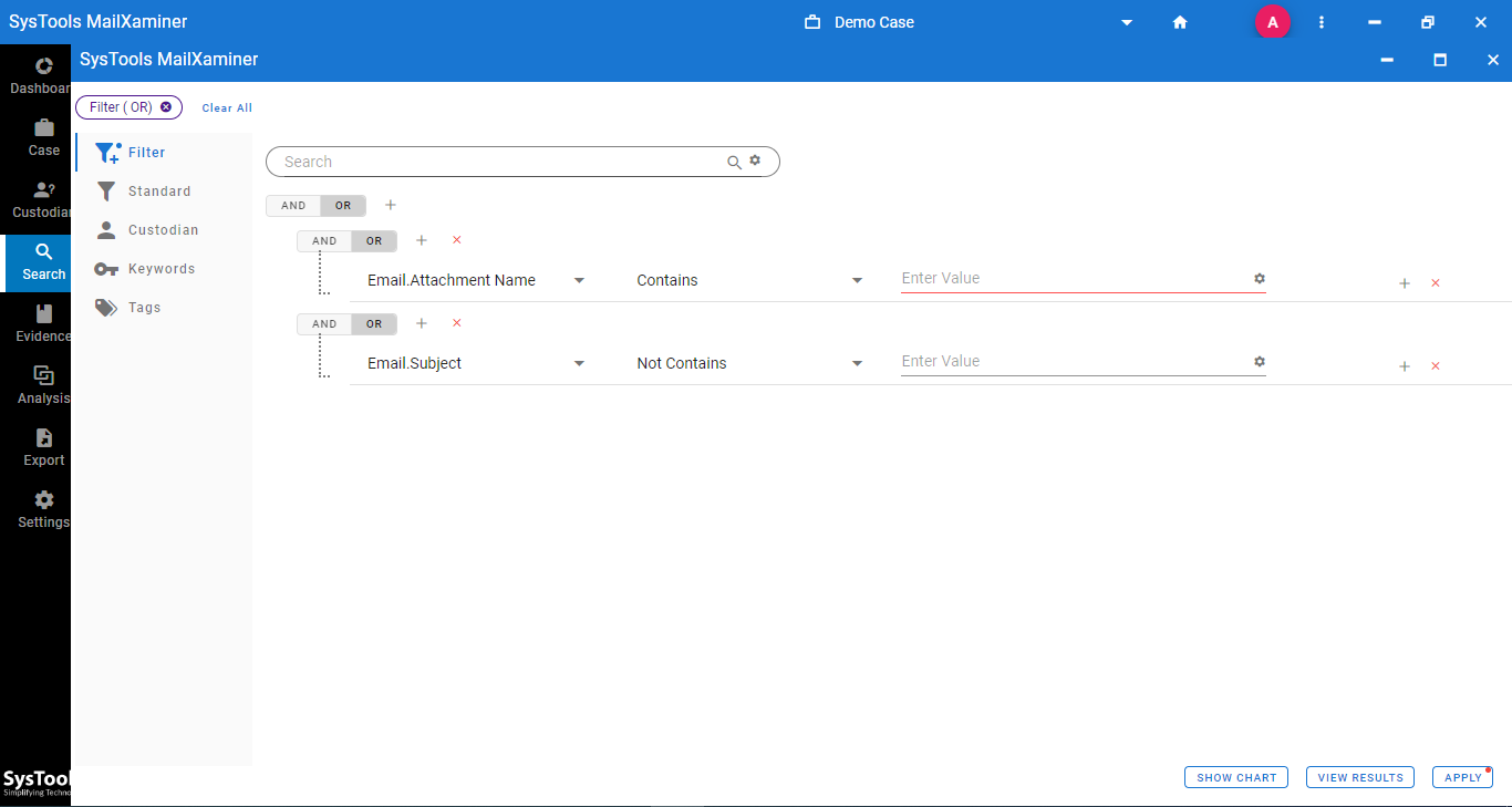 8. Better Visualization: MailXaminer facilitates a dashboard view for Evidence count, Total Size, Tags, Keywords, Read/Unread, Deleted Mails, Timeline, Bookmarked, Privilege Mails, File Types, and Emails with Attachment, Word Cloud, Custodian, and Total Emails. It provides greater visibility for the number of entries in Grid with Grid Count Feature.