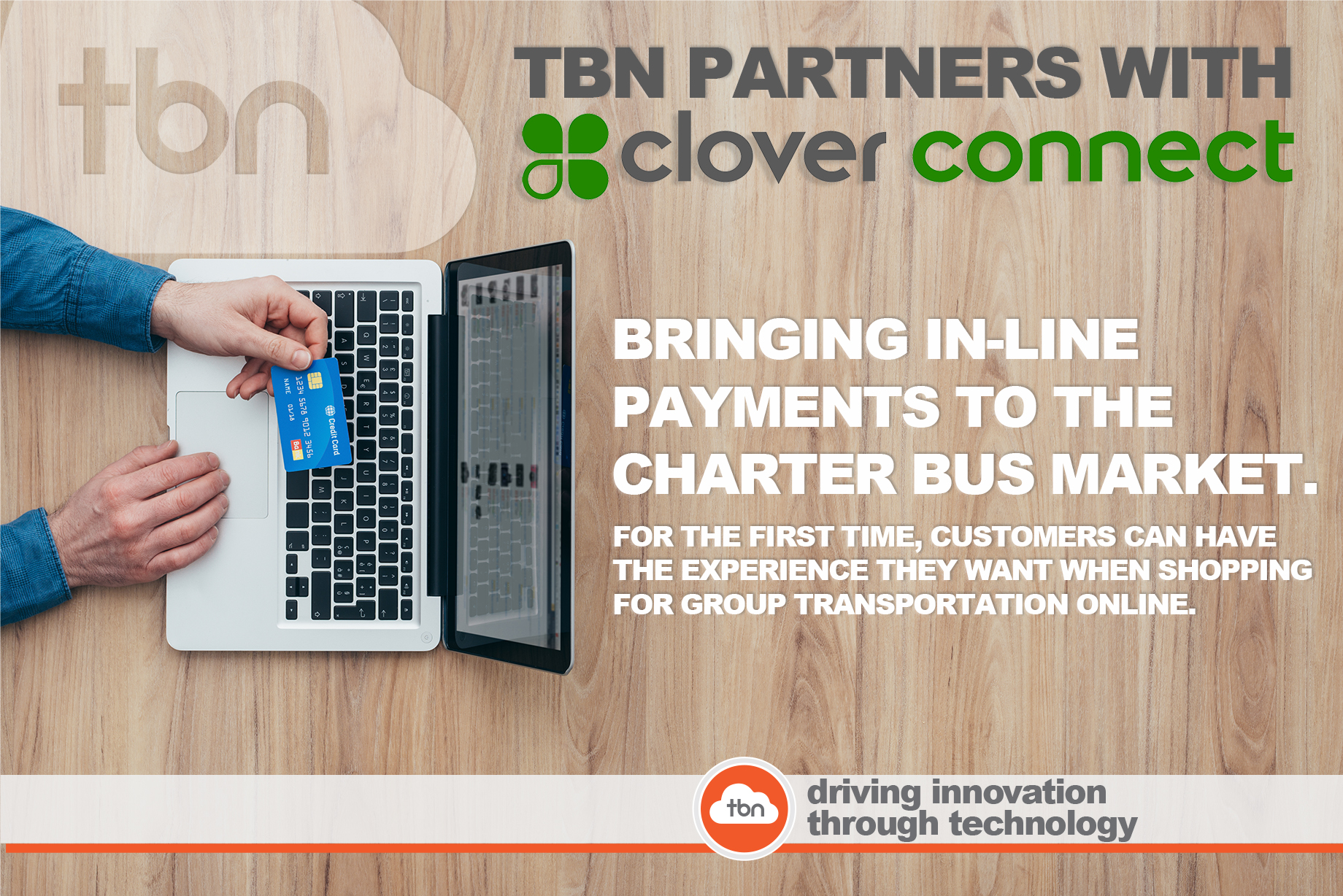 “We’re excited to offer group transportation operators a better way to process payments that is intuitive and familiar to their customers,” said Chris Riddell, CEO. “This partnership is a perfect example of our philosophy of driving innovation through technology. Studies show that over 80% of customers prefer to pay online with a credit card. With the Clover Connect payments engine powering our integration, TBN customers can finally bring payments in line with what their customers have come to expect from other industries and dramatically simplify the online payment management process. Not only does this mean great web-based solutions, but it also opens the door to bringing in-person transactions and even curbside payments under one umbrella. These powerful and exciting innovations are made possible by integrating with an industry-leading partner like Fiserv.”