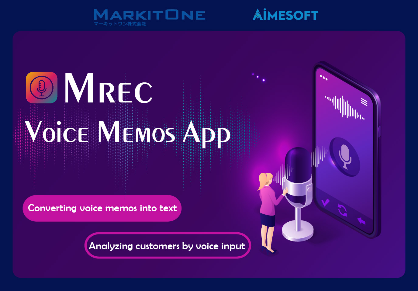 SAN JOSE, CALIFORNIA, UNITED STATES, August 2, 2022 /EINPresswire.com/ — Aimesoft, a global pioneer in Multimodal AI products and solutions, has developed MREC, a smartphone application for hotel clerks to create voice memos each time they welcome a guest or guest group. The application is released by MarkitOne Co., Ltd. in Japan for its hotel clients to help the analysis of hotel customers.