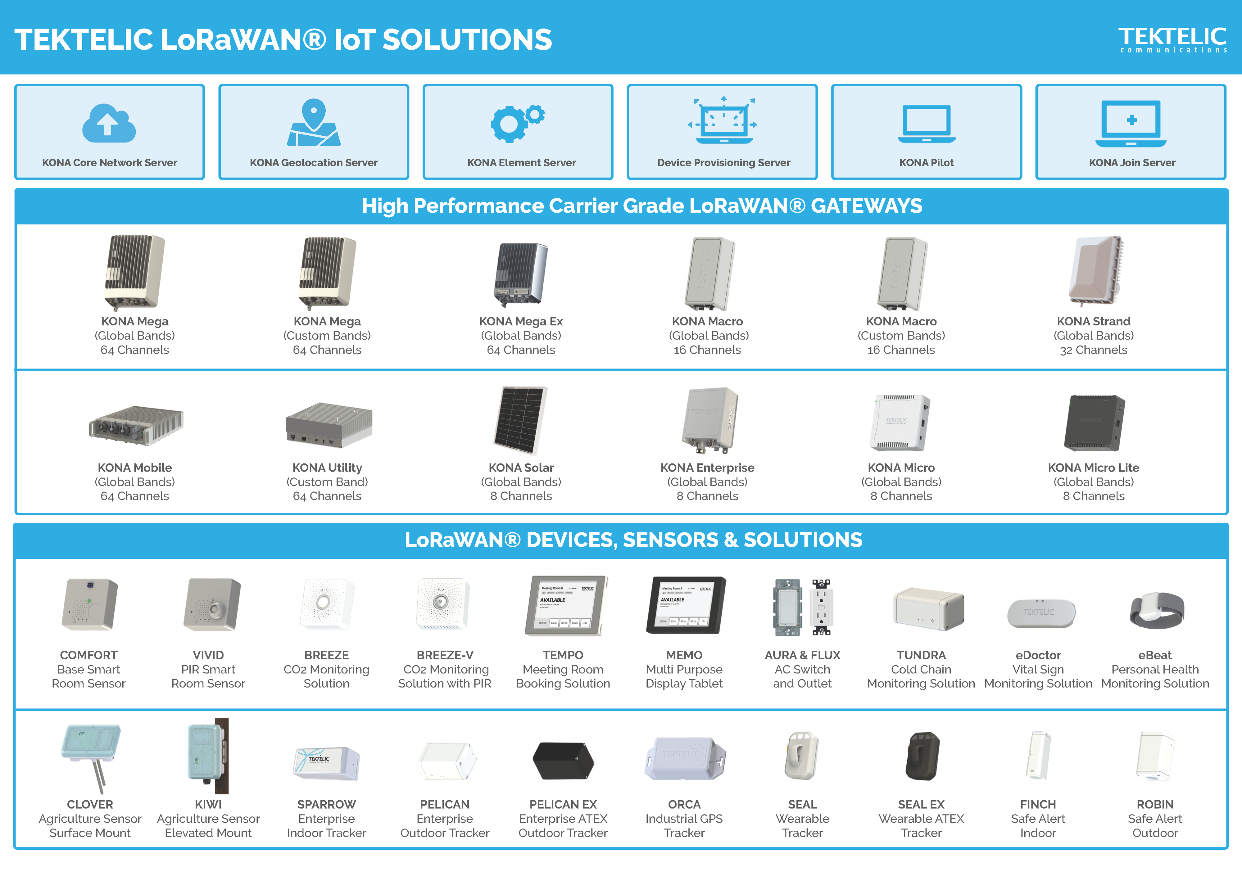 CALGARY, ALBERTA, CANADA, September 28, 2022 /EINPresswire.com/ — As a part of MWC Las Vegas 2022, TEKTELIC is pleased to announce that in addition to its Best-in-Class Carrier Grade LoRaWAN Gateways, TEKTELIC developed over 20 unique LoRaWAN IoT Devices and Sensors.