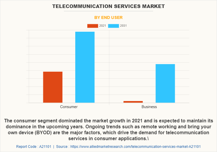 The current estimation of 2031 is projected to be lower than pre-COVID-19 estimates. The COVID-19 outbreak has low impact on the growth of the telecommunication services market, owing to the fact that the government and private sectors in emerging countries are working together to speed up the development of 5G infrastructure in the wake of the pandemic.
