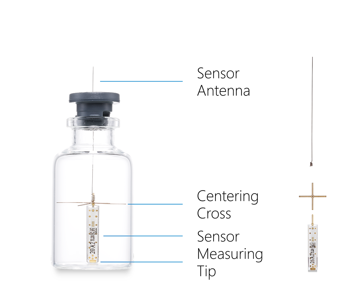 The technology is based on a sensor with oscillating quartz whose resonant frequency changes with temperature and is transmitted by radio. The Tempris sensor obtains its energy exclusively from the radio field generated by antennas in the freeze-drying chamber. The antennas transmit the data to the communication unit, which displays the signals as measured values in the HMI.