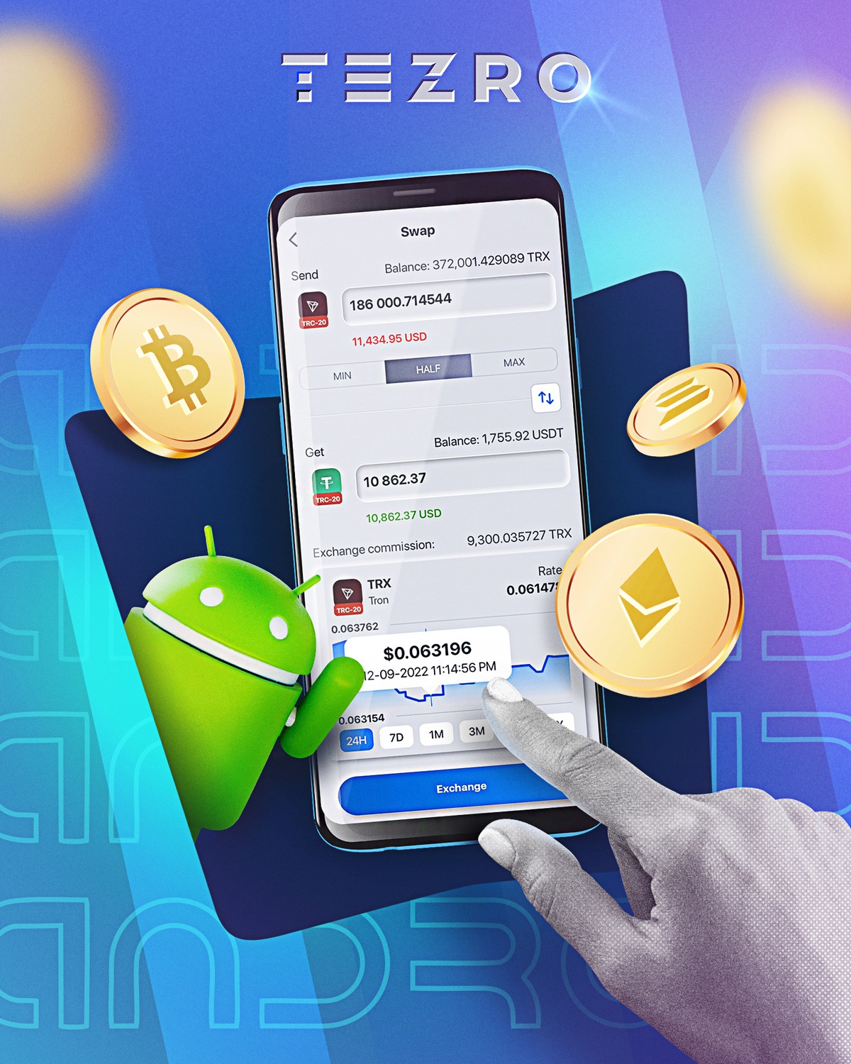 • TEZRO Exchange – Allows users to trade their digital assets, including more than 1000 cryptocurrencies.