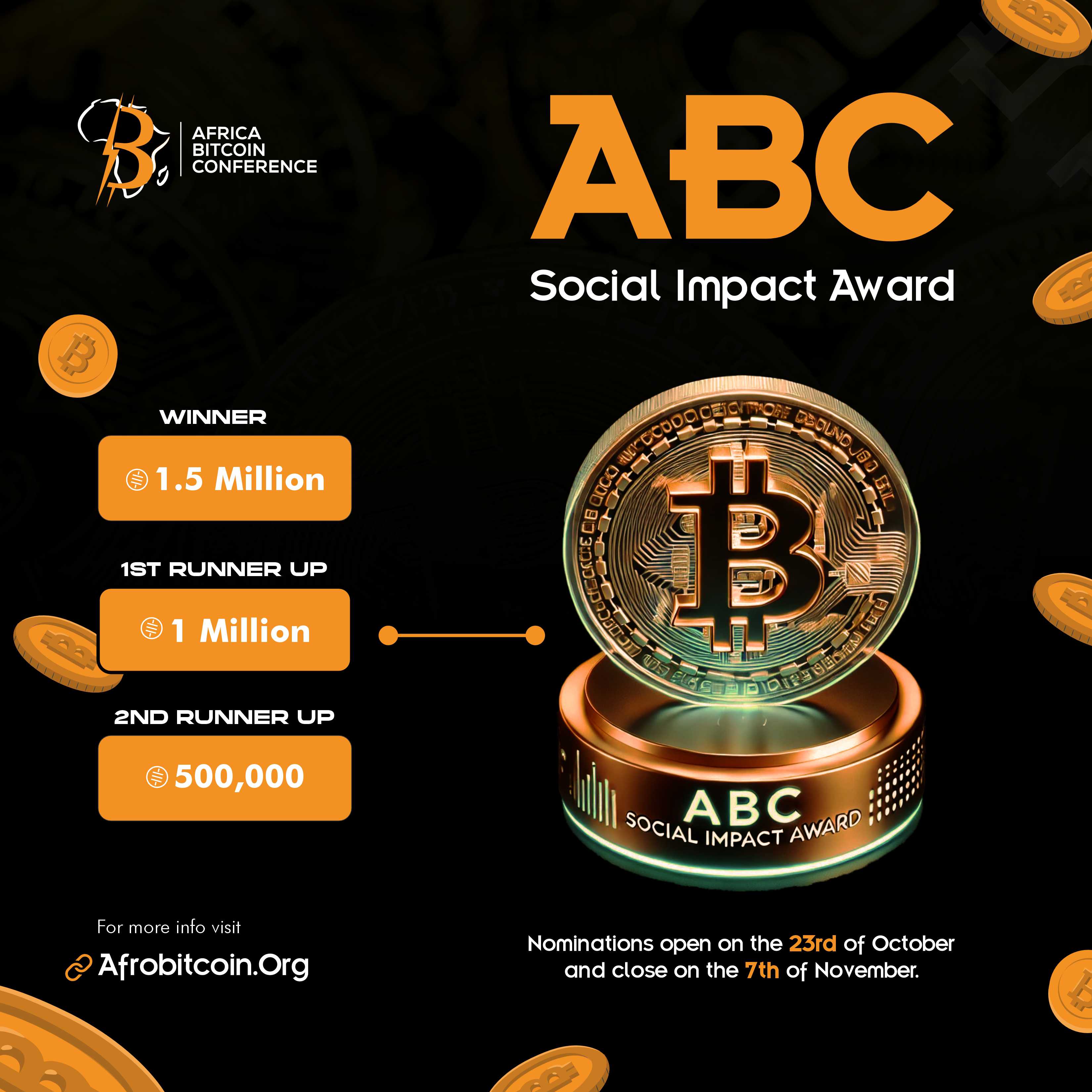 For the ABC Social Impact Award at the Africa Bitcoin Conference, the winners will receive not only recognition but also tangible rewards in the form of Bitcoin (Satoshi)