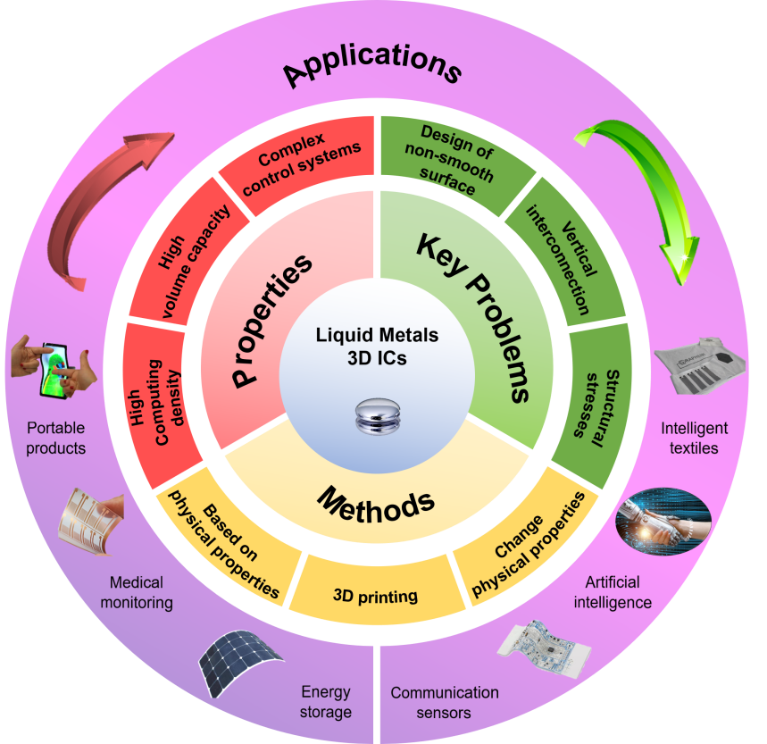 In a review published in the KeAi journal Wearable Electronics, a team of researchers explores the use of gallium-based liquid metals, which offer high conductivity, mechanical flexibility, and biocompatibility, as a core material for next-generation flexible 3D ICs.
