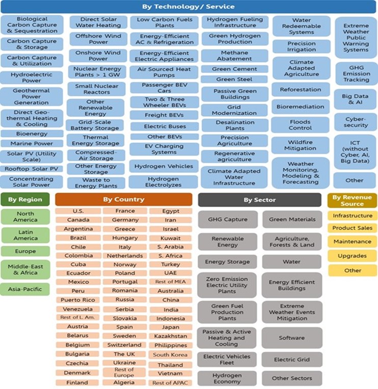 The 1st report that presents a bottom-up analysis of hundreds (460) Global Warming Mitigation sub-markets
