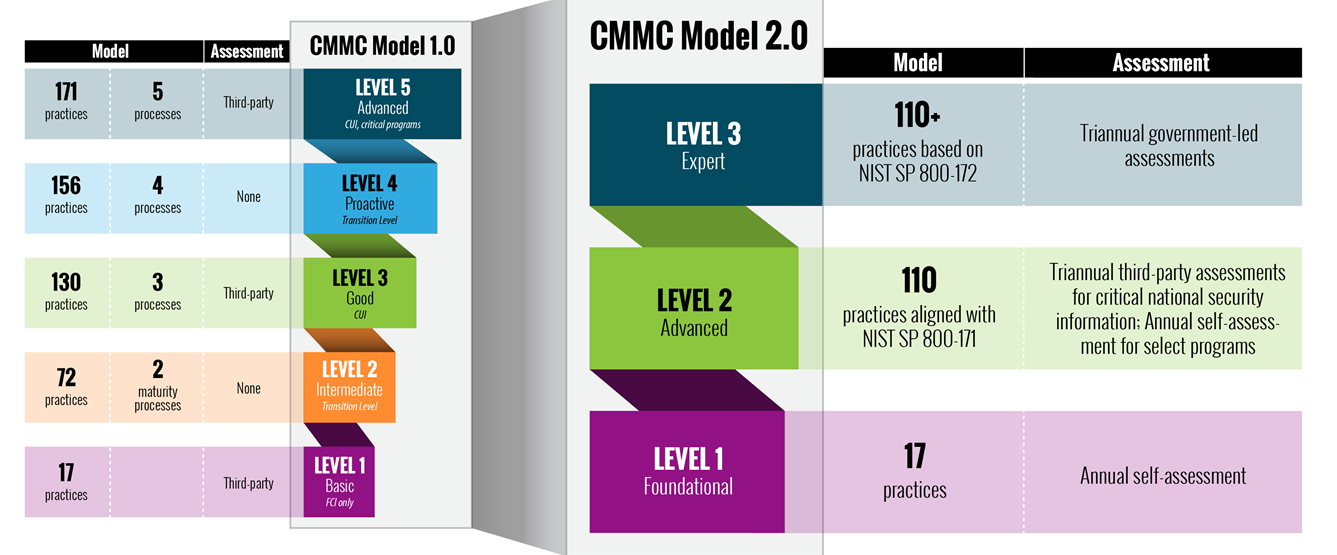•CMMC 2.0 Level 2 is now the equivalent of NIST 800-171.
