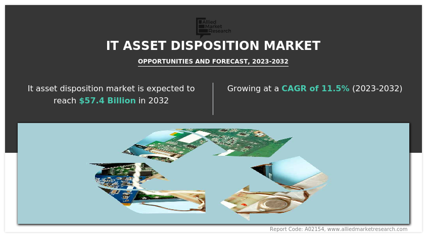 WILMINGTON, DE, UNITED STATES, October 24, 2024 /EINPresswire.com/ — According to the report published by Allied Market Research, The Global IT Asset Disposition Market Size Projected to Reach USD 57.4 Billion by 2032, Growing at a CAGR of 11.5% . The report provides an extensive analysis of changing market dynamics, major segments, value chain, competitive scenario, and regional landscape. This research offers valuable able guidance to leading players, investors, shareholders, and startups in devising strategies for sustainable growth and gaining a competitive edge in the market.