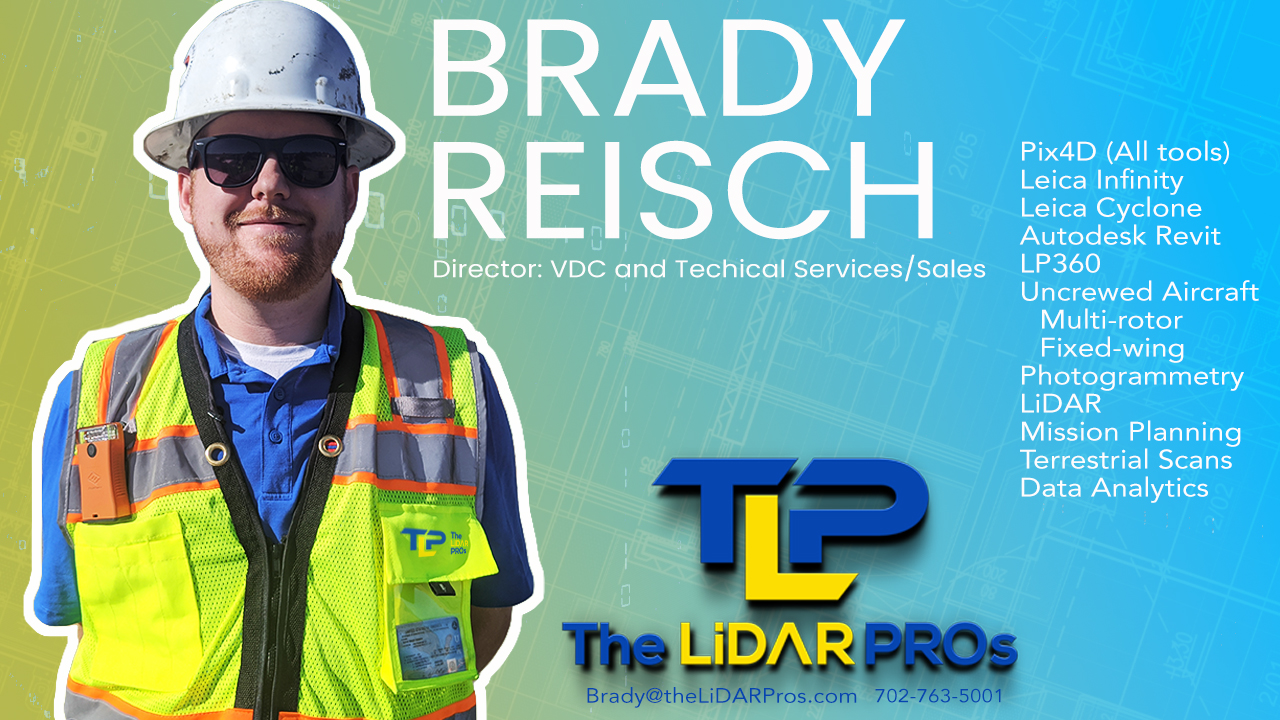 LAS VEGAS, NEVADA, UNITED STATES, March 14, 2024 /EINPresswire.com/ — The LiDAR PROs (TLP) is pleased to announce the appointment of Brady Reisch, TLP’s Virtual Design/Construction (VDC) Specialist with the mission to assist AEC firms, surveyors, civil engineers, and inspection teams to fully realize the potential of their uncrewed/drone systems in various operations.
