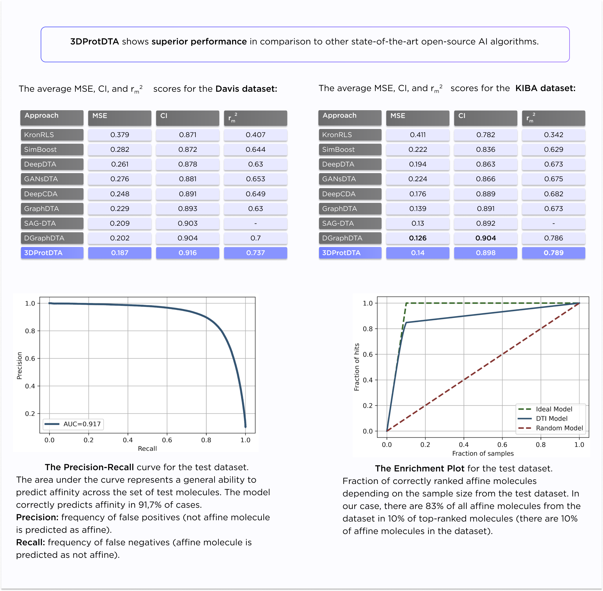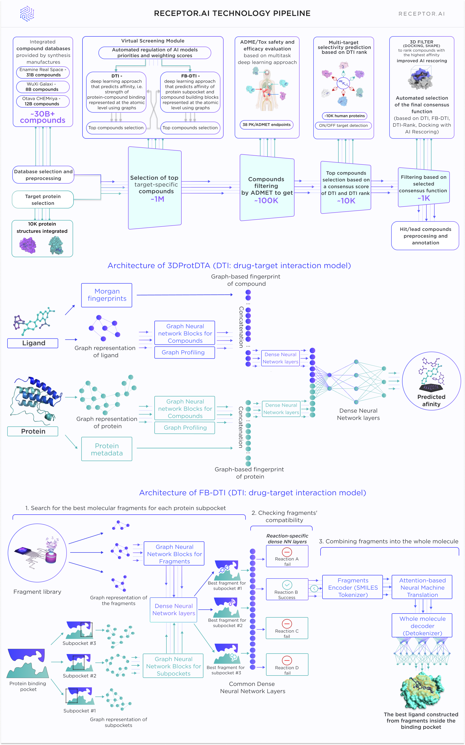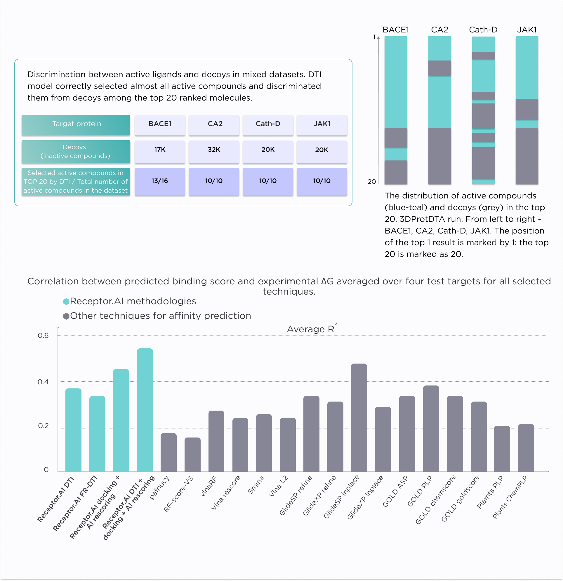 From our side, we tested not only Receptor.AI docking with AI rescoring (which is our dedicated method for secondary screening) but also our DTI and FB-DTI models, as well as the consensus model of DTI and docking with AI rescoring.