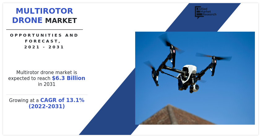 PORTLAND, OREGON, UNITED STATES, April 18, 2023 /EINPresswire.com/ — According to a new report published by Allied Market Research, titled, “Multirotor Drone Market,” The multirotor drone market was valued at $1.86 billion in 2021, and is estimated to reach $6.30 billion by 2031, growing at a CAGR of 13.1% from 2022 to 2031.