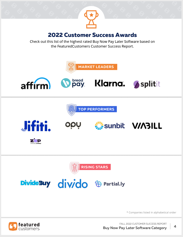 The Top Buy Now Pay Later Software Vendors According to the FeaturedCustomers Fall 2022 Customer Success Report Rankings