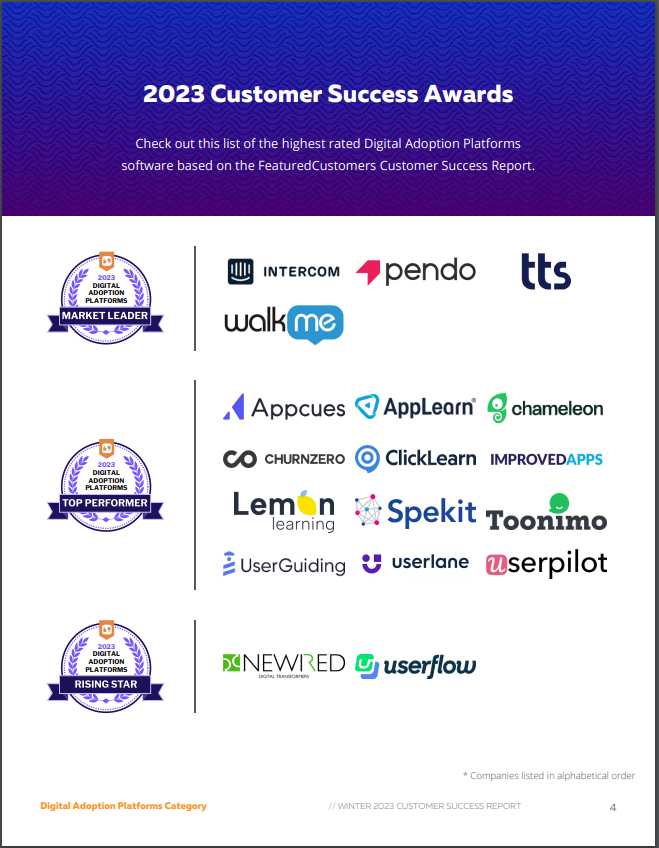 The Top Digital Adoption Platforms According to the FeaturedCustomers Winter 2023 Customer Success Report Rankings