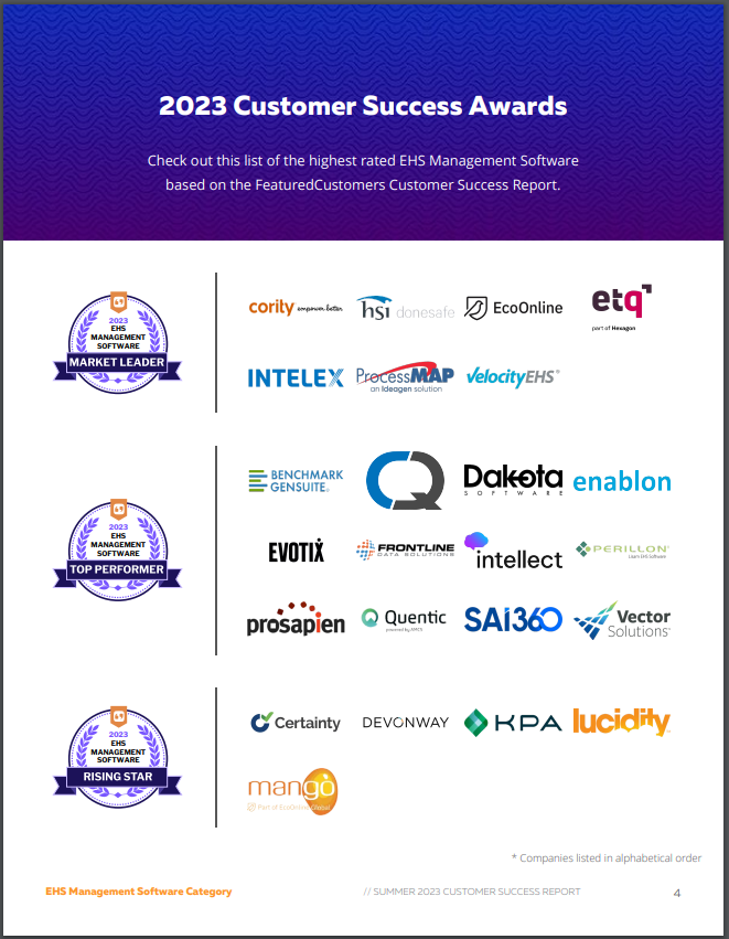 The Top EHS Management Software Vendors According to the FeaturedCustomers Summer 2023 Customer Success Report Rankings