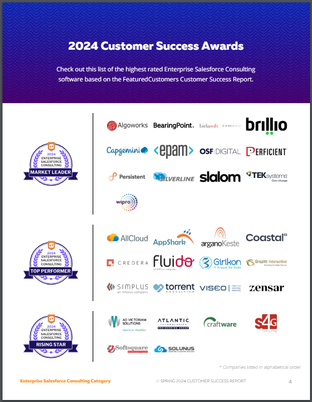 FeaturedCustomers releases the Spring 2024 Enterprise Salesforce Consulting Customer Success Report.