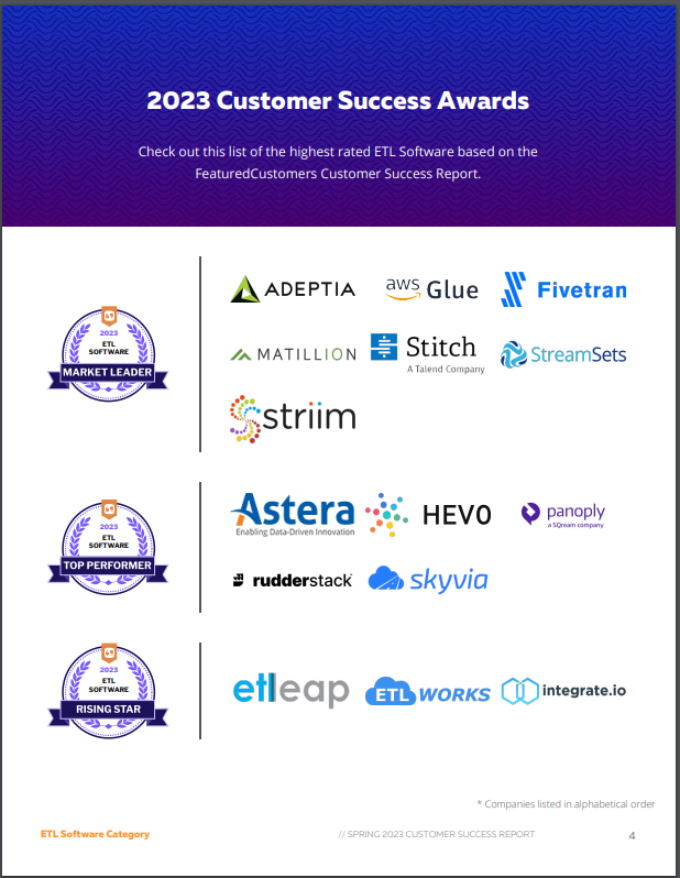 The Top ETL Software Vendors According to the FeaturedCustomers Spring 2023 Customer Success Report Rankings