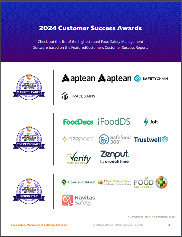 The Top Food Safety Management Software Vendors According to the FeaturedCustomers Spring 2024 Customer Success Report
