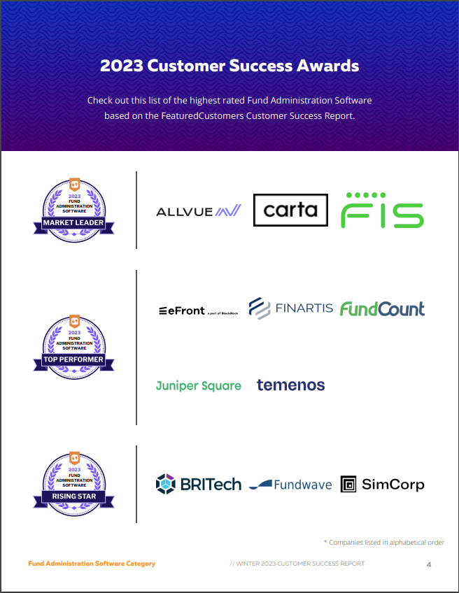 The Top Fund Administration Software According to the FeaturedCustomers Winter 2023 Customer Success Report Rankings