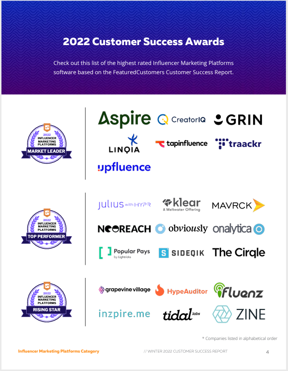 The Top Influencer Marketing Platforms According to the FeaturedCustomers Winter 2022 Customer Success Report Rankings