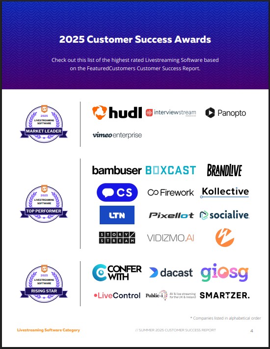 The Top Livestreaming Software Vendors According to the FeaturedCustomers Summer 2025 Customer Success Report Rankings