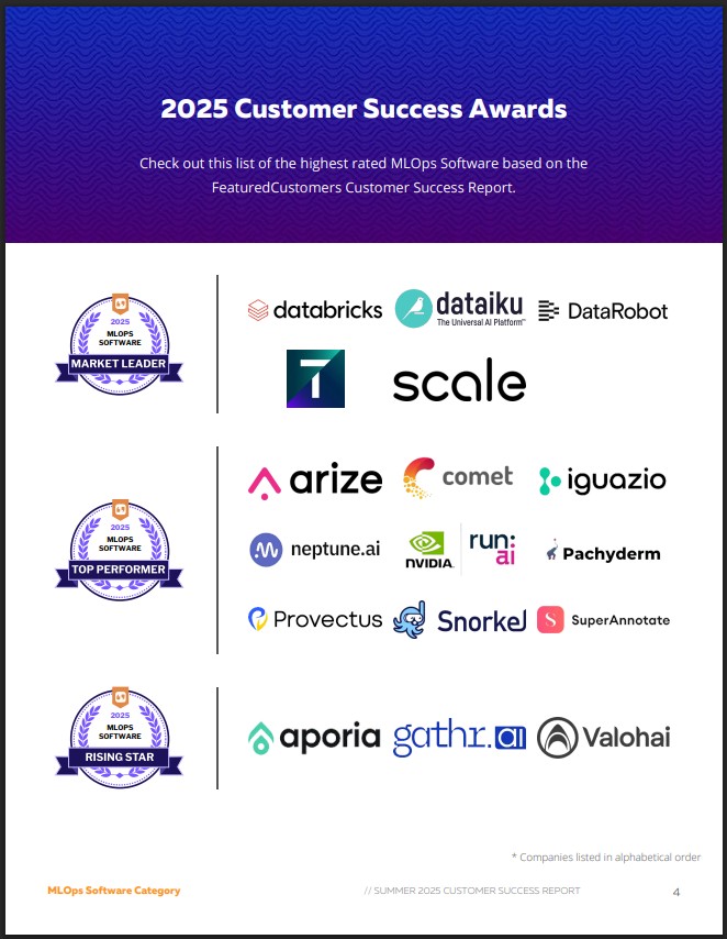 COOPER CITY, FL, UNITED STATES, June 10, 2025 /EINPresswire.com/ — Today FeaturedCustomers published the Summer 2025 MLOps Software Customer Success Report to give prospects better insight on which MLOps Software would work best for their business according to real customer references.