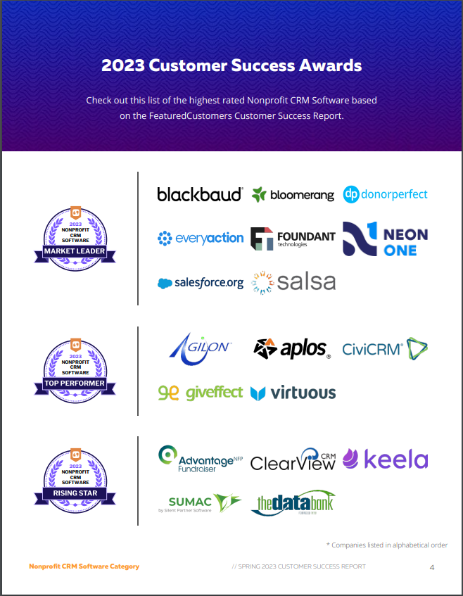 The Top Nonprofit CRM Software Vendors According to the FeaturedCustomers Spring 2023 Customer Success Report Rankings