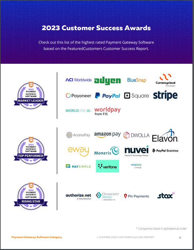 FeaturedCustomers releases the Summer 2023 Payment Gateway Software Customer Success Report.