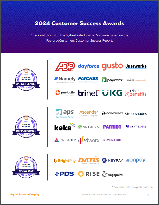 FeaturedCustomers releases the Winter 2024 Payroll Software Customer Success Report.