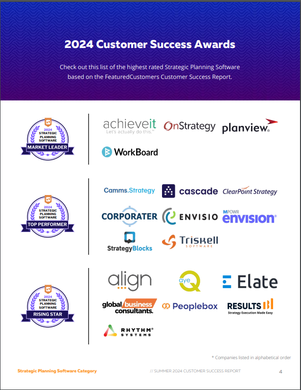 FeaturedCustomers releases the Summer 2024 Strategic Planning Software Customer Success Report.