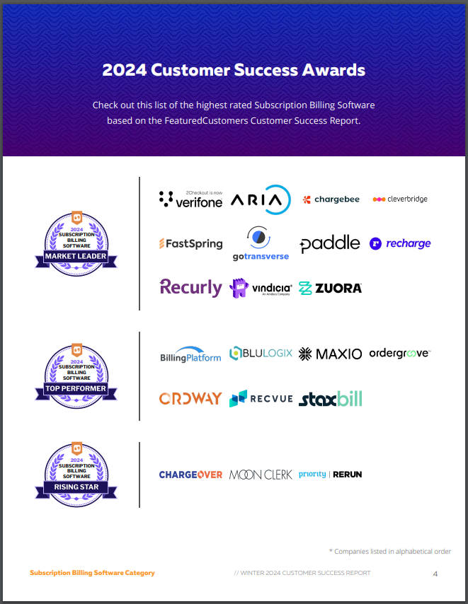 FeaturedCustomers releases the Winter 2024 Subscription Billing Software Customer Success Report.