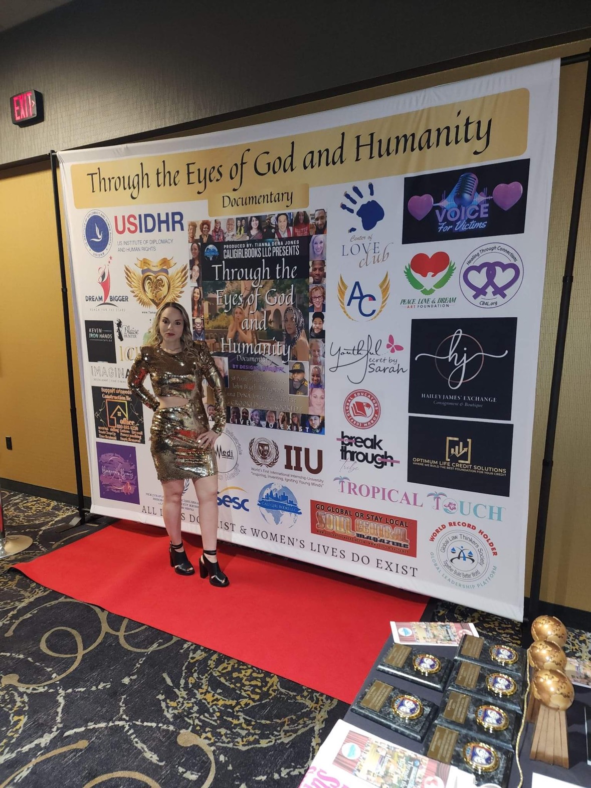 Jones has also proven her success by intertwining her Global Peace movements with the mission behind this film of proving that All Lives Do Exist and Women’s Lives Do Exist with God’s Existence. Jones carried the weight to present her cast who came to the event with plaques, and medals to show gratitude as NONE of the CAST was staged or paid to do the documentary during the lockdown of the Covid-19 Pandemic. As a BONUS Jones shares her kindness presenting Global Peace Brand Ambassadors who came to the movie premier red-carpet event in Oakland County, Michigan with Globe Trophies.