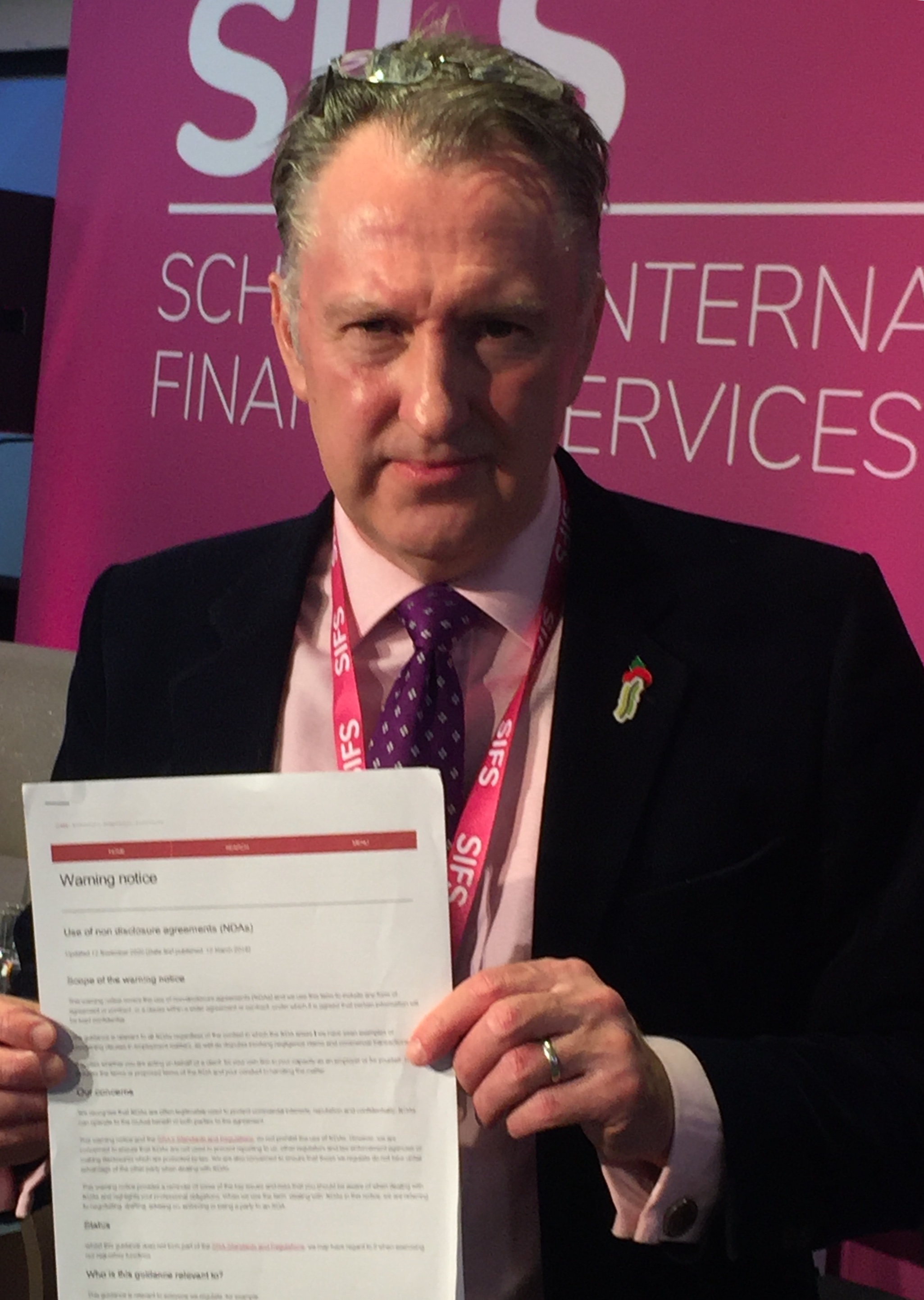 FAP Chairman David Clarke holding the SRA Warning Notice