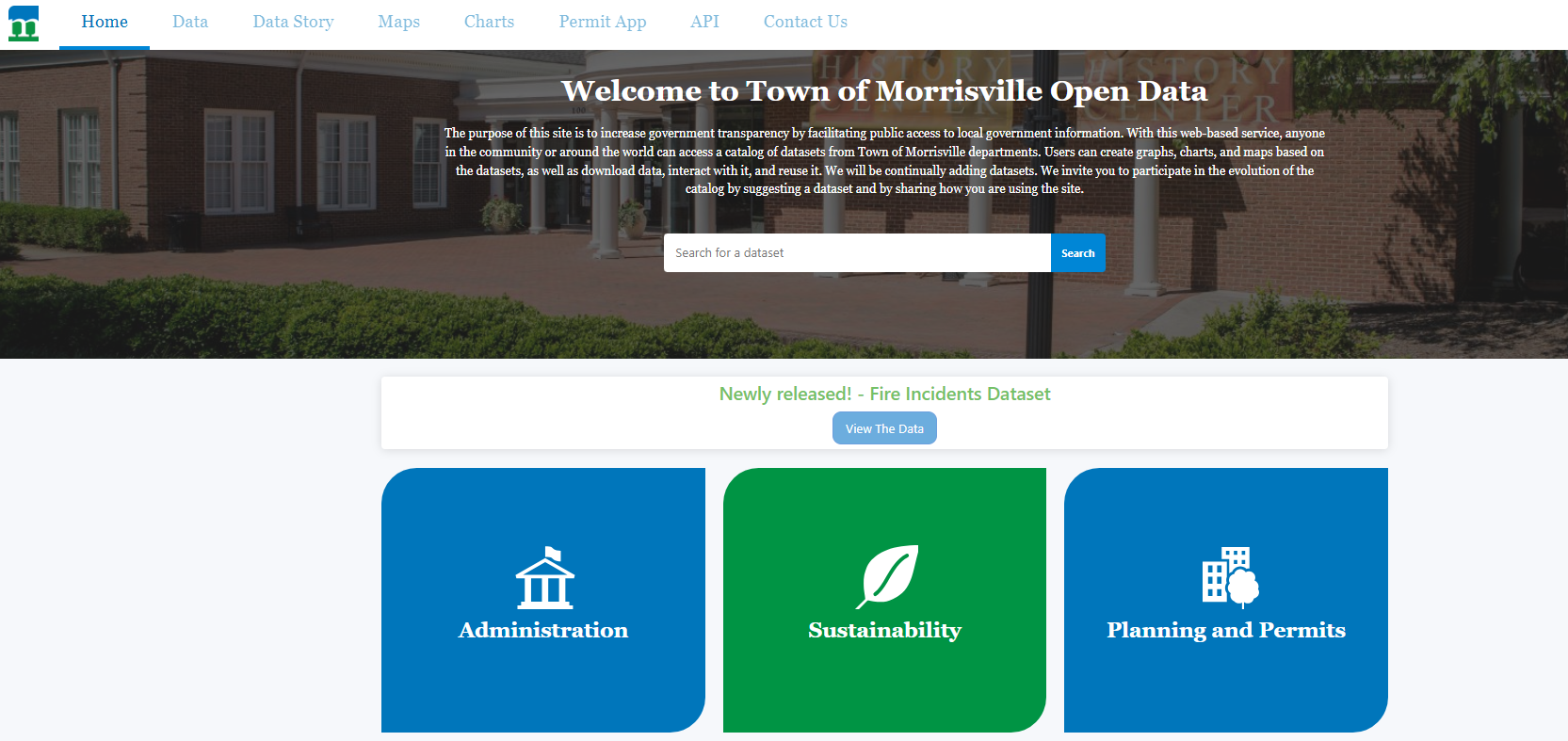 Morrisville’s open data portal can be found at https://opendata.townofmorrisville.org/pages/home/.