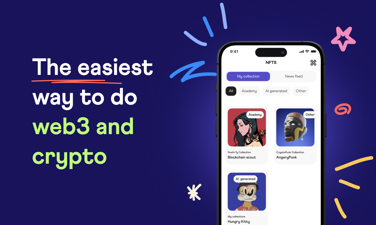 Doshi is a non-custodial crypto wallet made for teens and young adults. Social, educational, and simple to use. With Doshi, anyone regardless of their age can create a wallet, mint NFTs, fantasy trade, and learn about the space with unprecedented ease. You can find out more about our digital crypto wallet suitable for teens here.