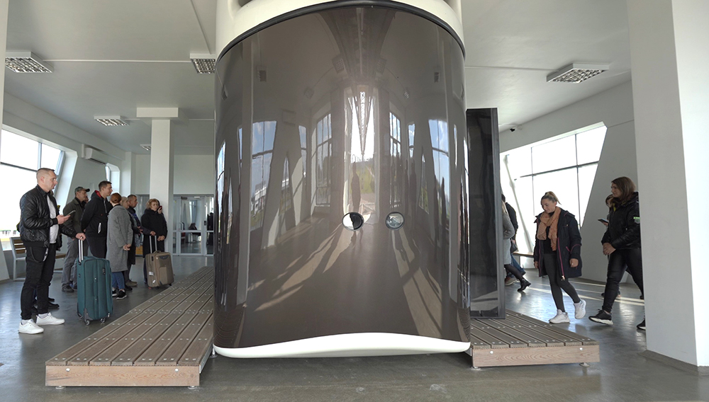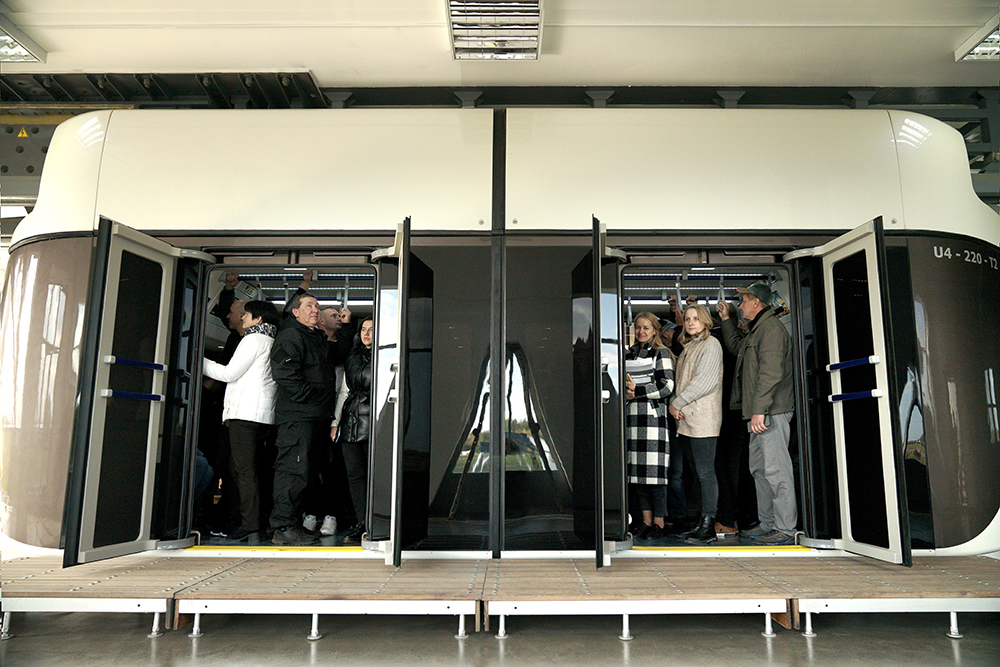 During the test, a vehicle with a capacity of up to 48 passengers was used. People could enter it from both sides at the same time, and embarkation took very little time. The vehicle was continuously performing transportation (about 1 km), embarkation, and disembarkation operations. This test run proved the stability of uST transport to high loads.