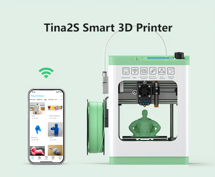 Tina2S smart 3D printer is easy to operate and quiet in design
