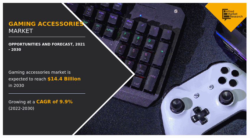 PORTLAND, OR, UNITED STATES, June 29, 2023/EINPresswire.com/ — According to the report published by Allied Market Research, titled, “Gaming Accessories Market by Component (Headsets, Keyboard, Mice, Controller, Others), by Device Type (PC, Gaming Console), by Connectivity type (Wired, Wireless), by End Use (Online, Offline): Global Opportunity Analysis and Industry Forecast, 2021-2030”, the global gaming accessories market accrued $6.1 billion in 2021, and is predicted to garner $14.4 billion by 2030, registering a CAGR of 9.9% from 2022 to 2030. The report offers a detailed analysis of changing market trends, top segments, key investment pockets, value chain, regional landscape, and competitive scenario.