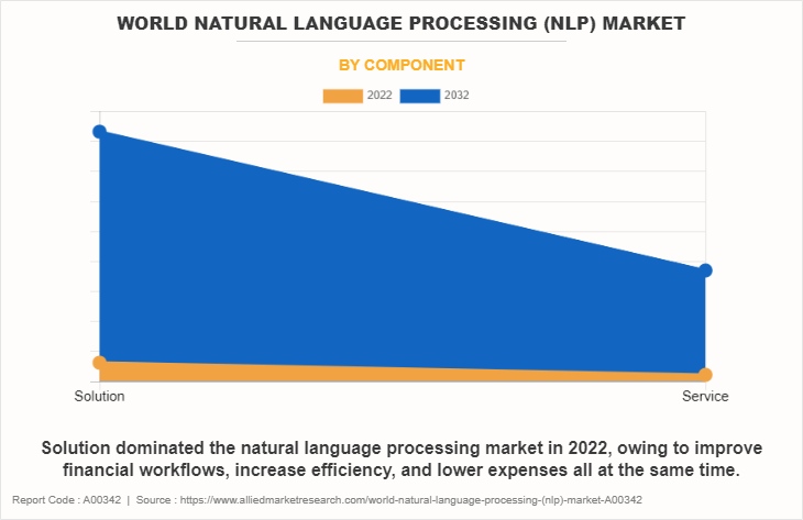 By type, statistical NLP segment accounted for nearly half of the global natural language processing market share in 2022, and is expected to rule the boost by 2032, owing to offers quantization, maximum likelihood & related rules and class conditional density function, such advantageous features. The rule-based NLP segment would also display the fastest CAGR of 34.1% throughout the forecast period, owing to offering advantages such as availability, cost efficiency and enhanced Speed.