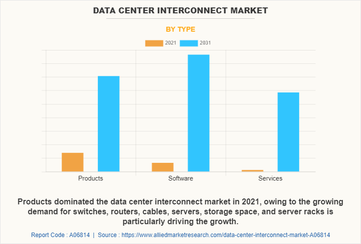Depending on the type, the data center interconnect market size is dominated by product segment in 2021 and is expected to continue this trend during the forecast period, owing to its advantages such as high-bandwidth and low-latency connectivity, network segmentation and security, reliability and predictability and compliance and regulatory requirements for various organizations such as private and public businesses, government, etc.