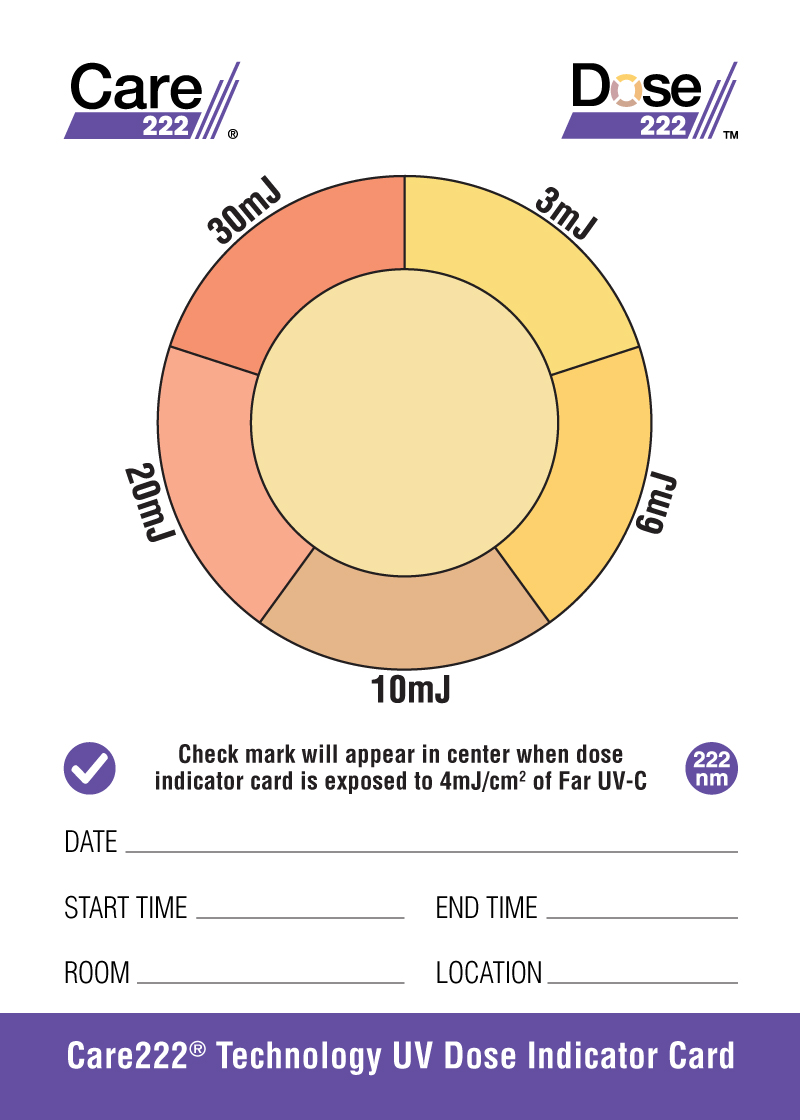 CYPRESS, CALIFORNIA, UNITED STATES, August 30, 2021 /EINPresswire.com/ — Ushio America, Inc. (“Ushio”;http://www.ushio.com) introduces a new method to visually detect Far UV-C light. Dose222™ Indicator Cards are cost effective and easy to use to visually verify surfaces or areas that are receiving Far UV-C light exposure within the expected dosage range. Optimized to detect filtered 222nm light, Dose222™ Indicator Cards are specifically formulated with proprietary photochromatic technology. The exposed card will change color when Far UV-C light is emitted from devices utilizing Care222® technology.