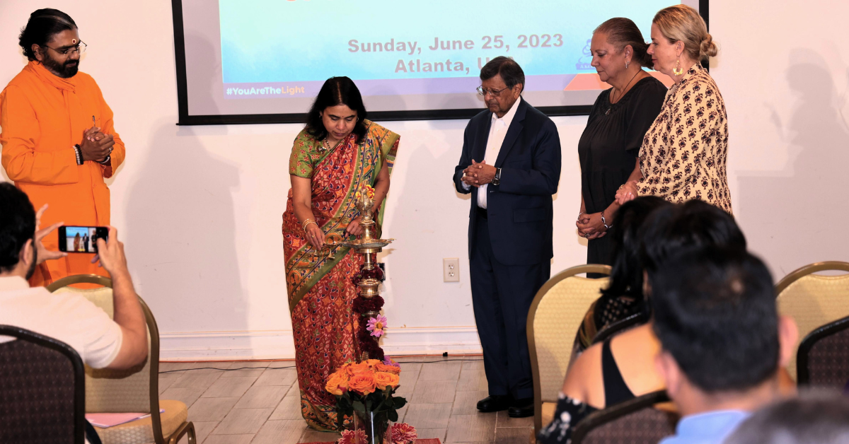 The summit commenced with welcoming remarks by Raj Vuchatu, Executive Director of Vibha Atlanta, followed by the ceremonial Lighting of the Lamp by all the distinguished guests, symbolizing knowledge and wisdom.