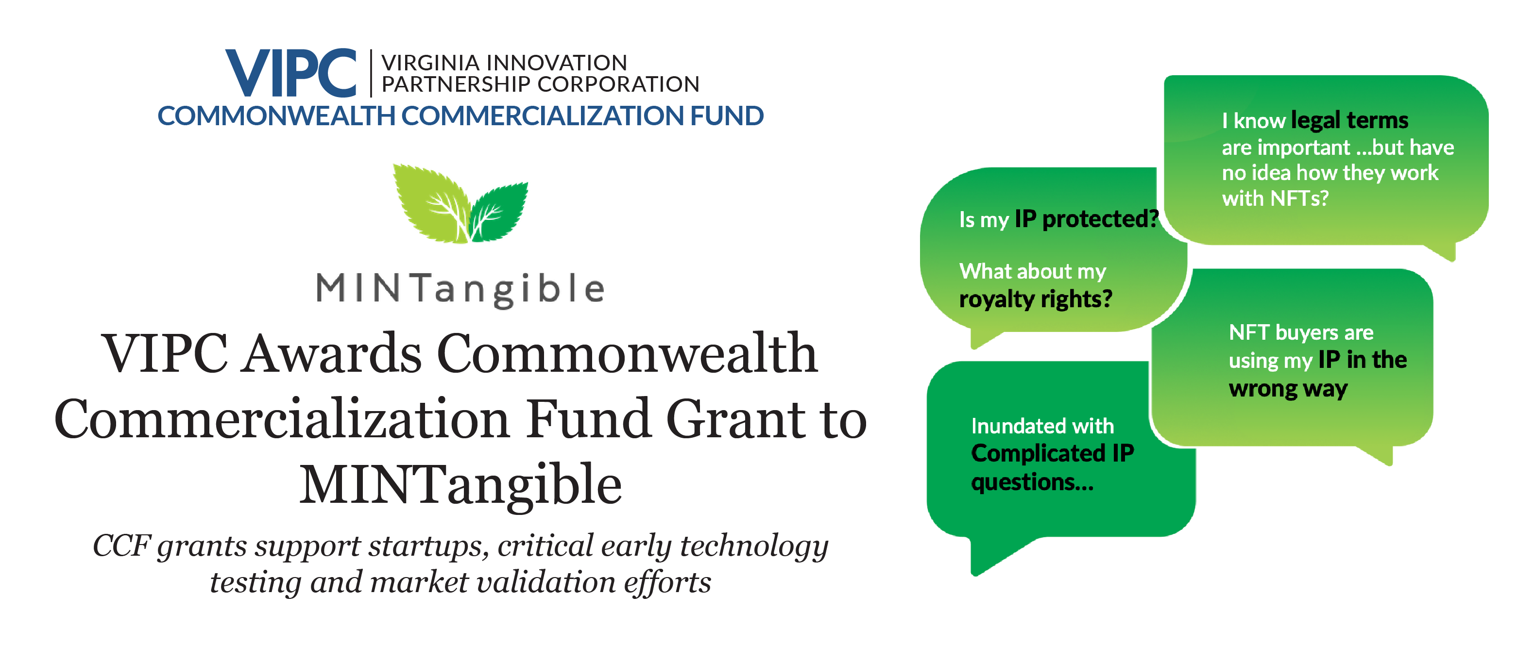 “We are pleased to award a CCF grant to MINTangible,” said Jeanette Townsend, VIPC’s Director for Private Sector Grants. “VIPC’s CCF grant program plays an important role in getting funding to Virginia-based pre-seed and seed-stage startups when they need it most. Our goal is to help Virginia companies grow and lead the nation in innovation, opportunity and job creation. MINTangible’s exceptional team is building a solution that will bring NFTs into the mainstream, allowing for the democratization of the NFT ecosystem.”