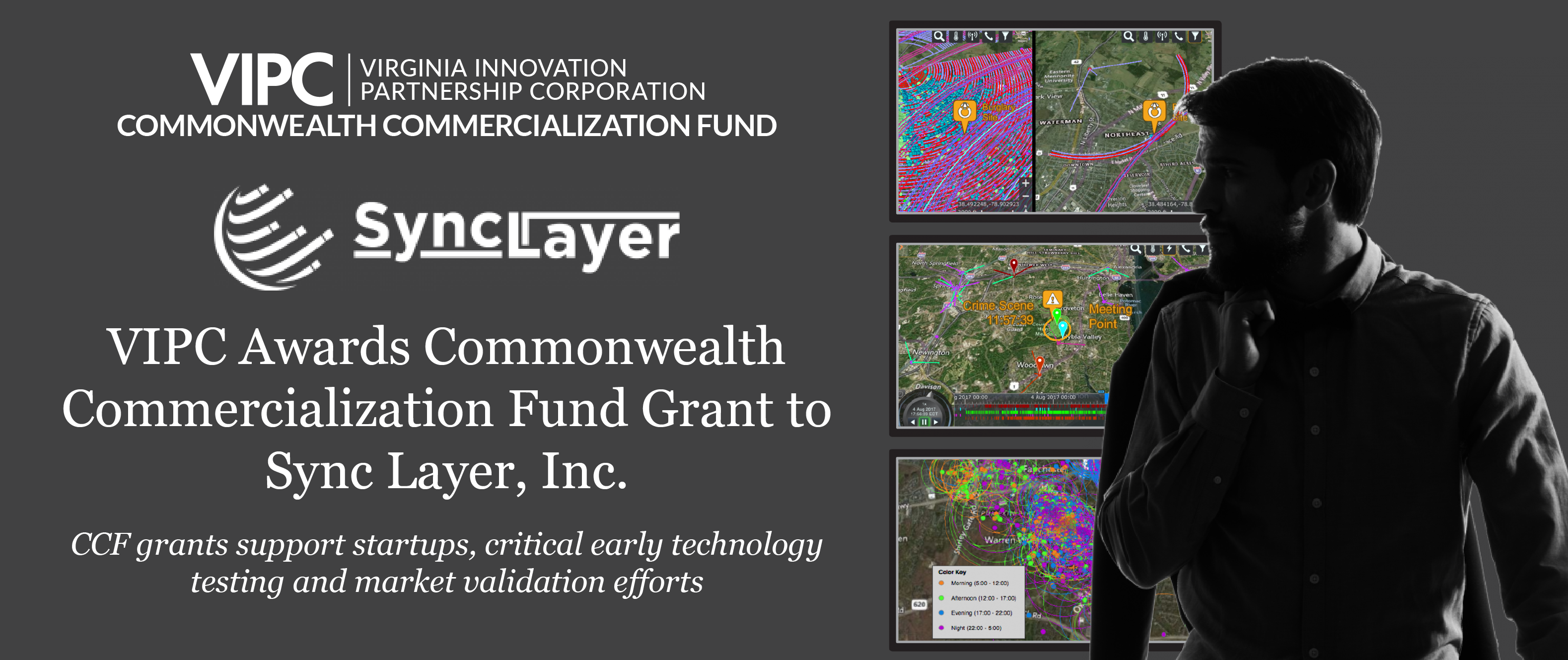 “We are pleased to award a CCF grant to Sync Layer,” said Jeanette Townsend, VIPC’s Director for Private Sector Grants. “VIPC’s CCF grant program plays an important role in getting funding to Virginia-based pre-seed and seed-stage startups when they need it most. Our goal is to help Virginia companies grow and lead the nation in innovation, opportunity and job creation. We were impressed by Sync Layer’s early customer traction and believe that the new blue force tracking capabilities will make its platform even more appealing to the intelligence and law enforcement communities.”